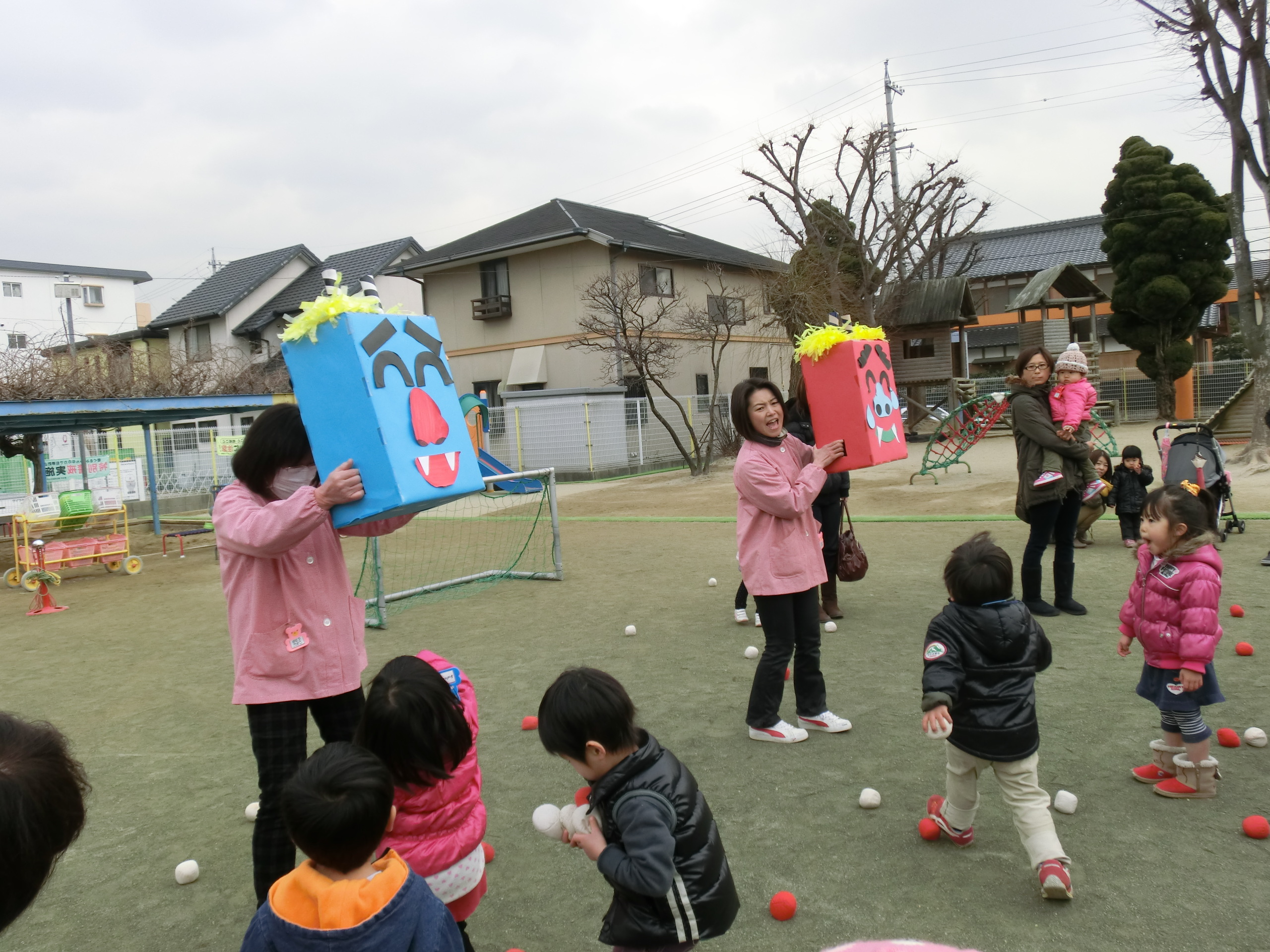 今日は豆まきで鬼退治!