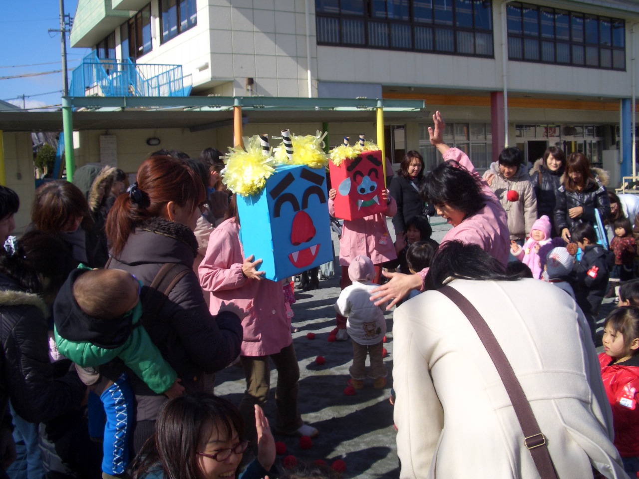 子育て広場でも、みんなの中にいる 泣き虫鬼やおこりんぼ鬼をおいだしました。