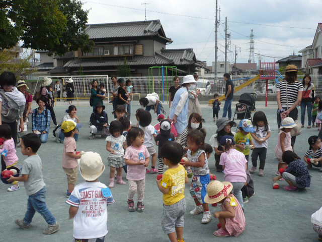園庭では、年長さんがラジオ体操をする中、マミーズリンクのお友達も、たくさん遊びに来てくれ あちらこちらで、元気な声が聞こえてきました。