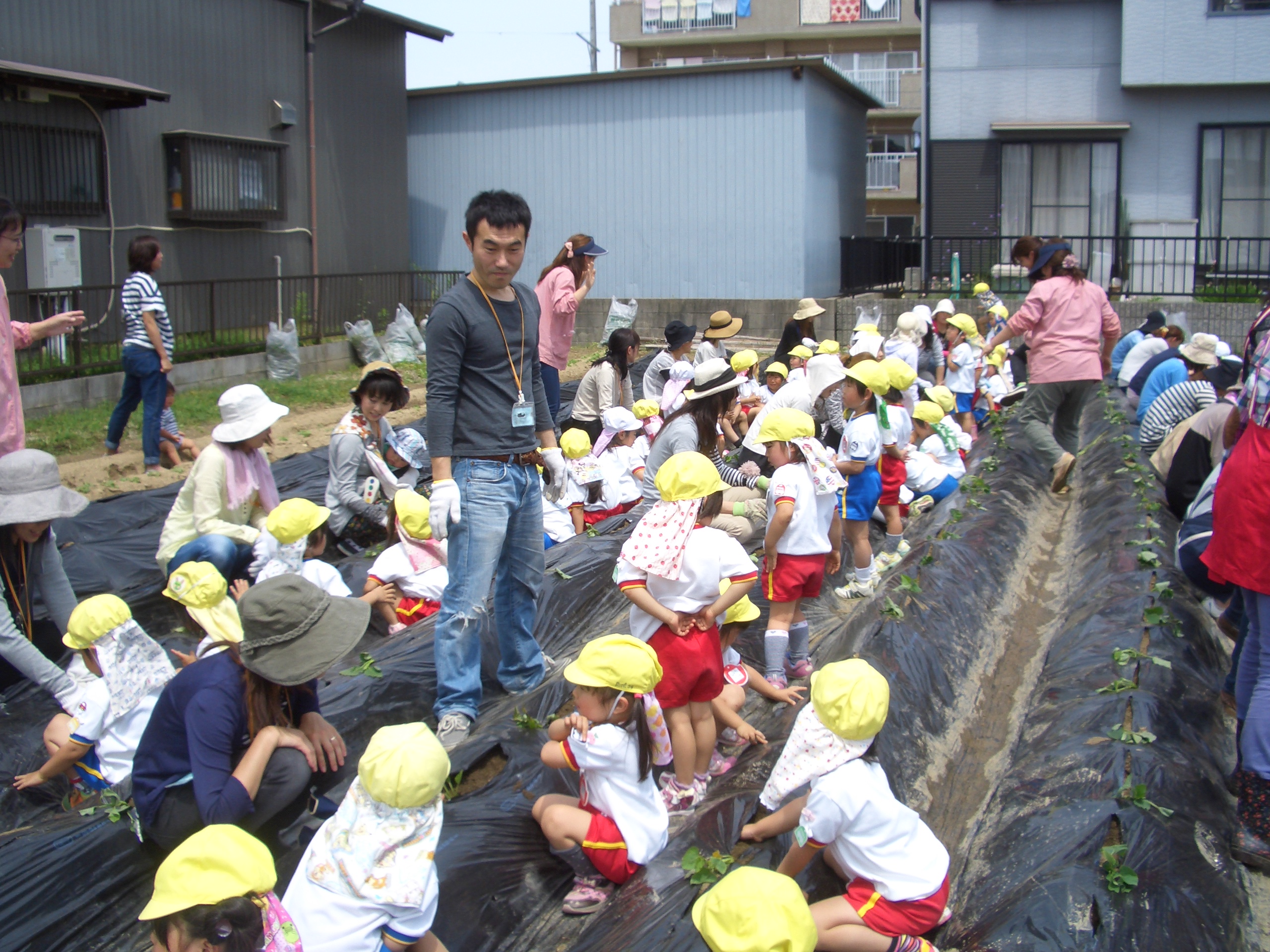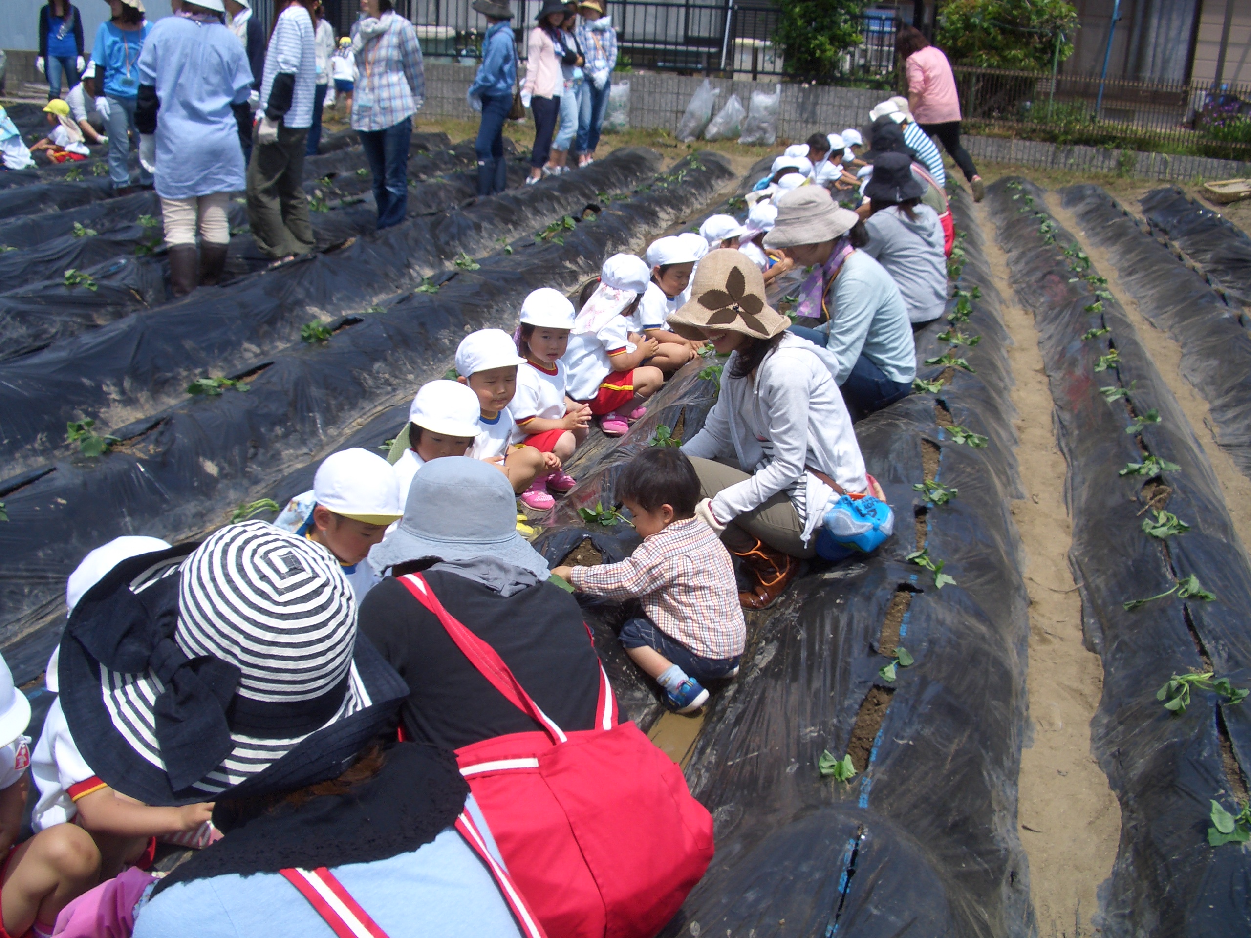 「おおきくなぁれ」のおまじないをかけ、大切に植えました。今から秋の収穫が楽しみです!