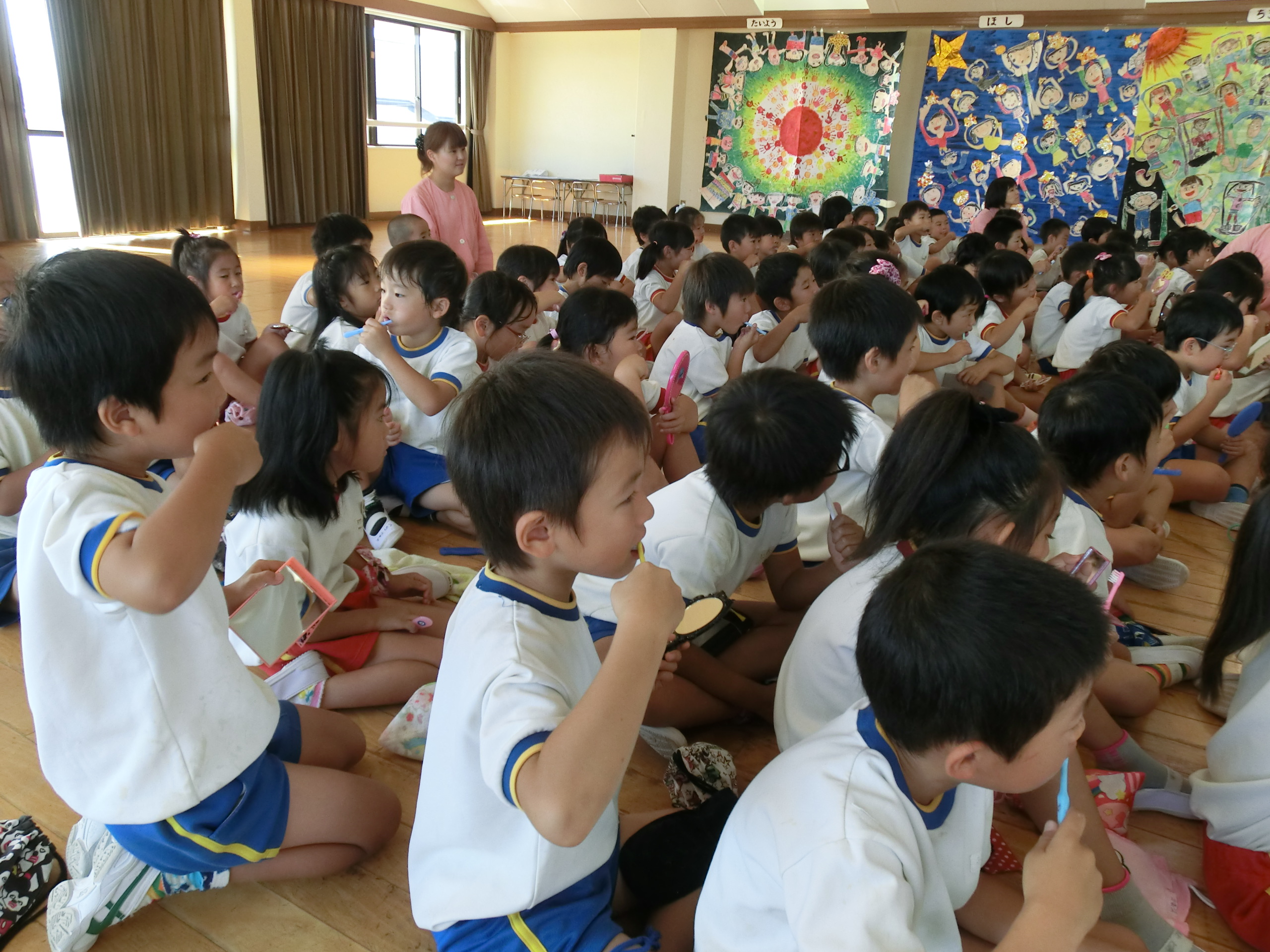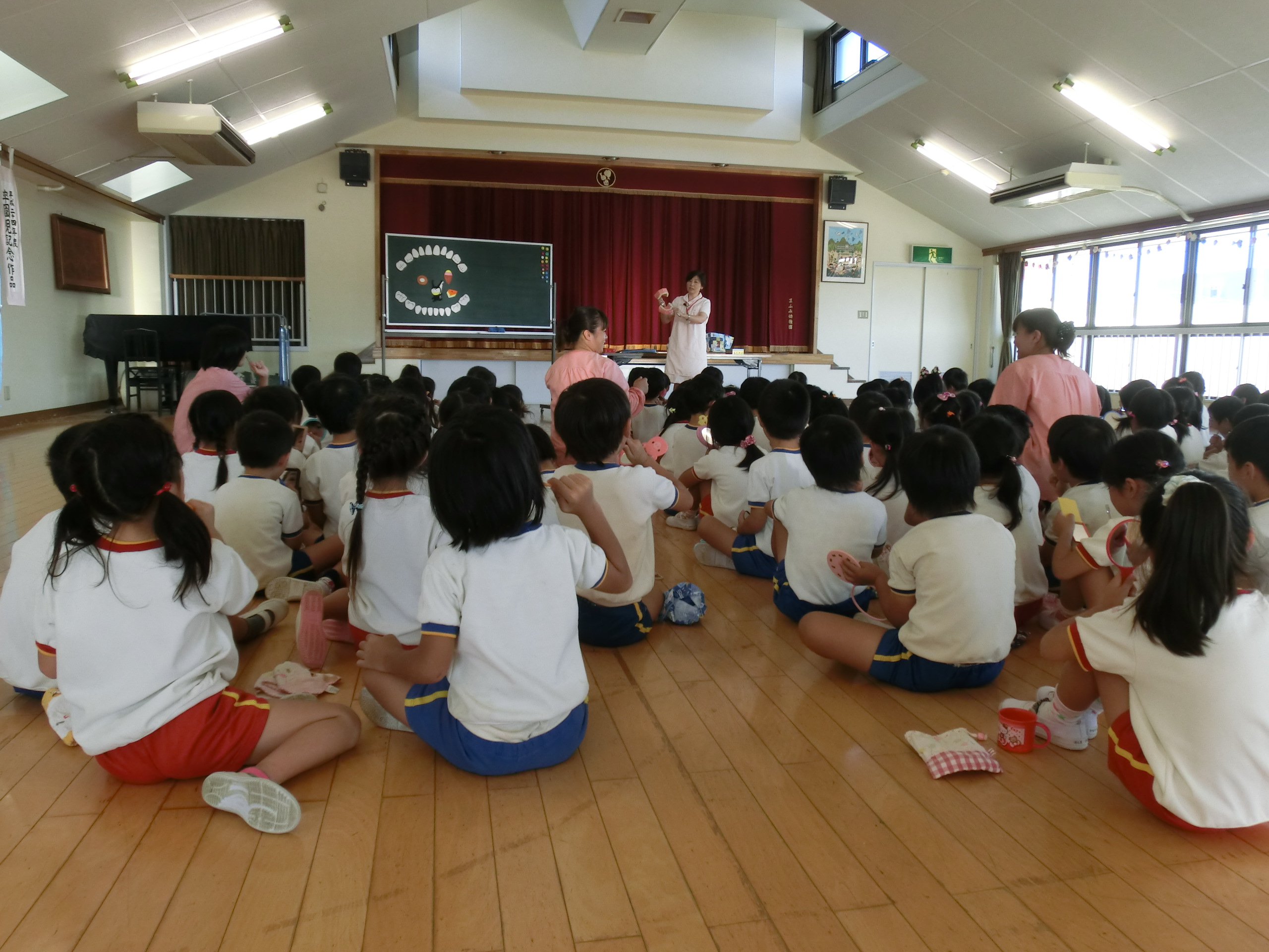 子どもたちは先生の話を聞きながら、実際に歯ブラシを持って手を動かし、正しい歯の磨き方を勉強しました。