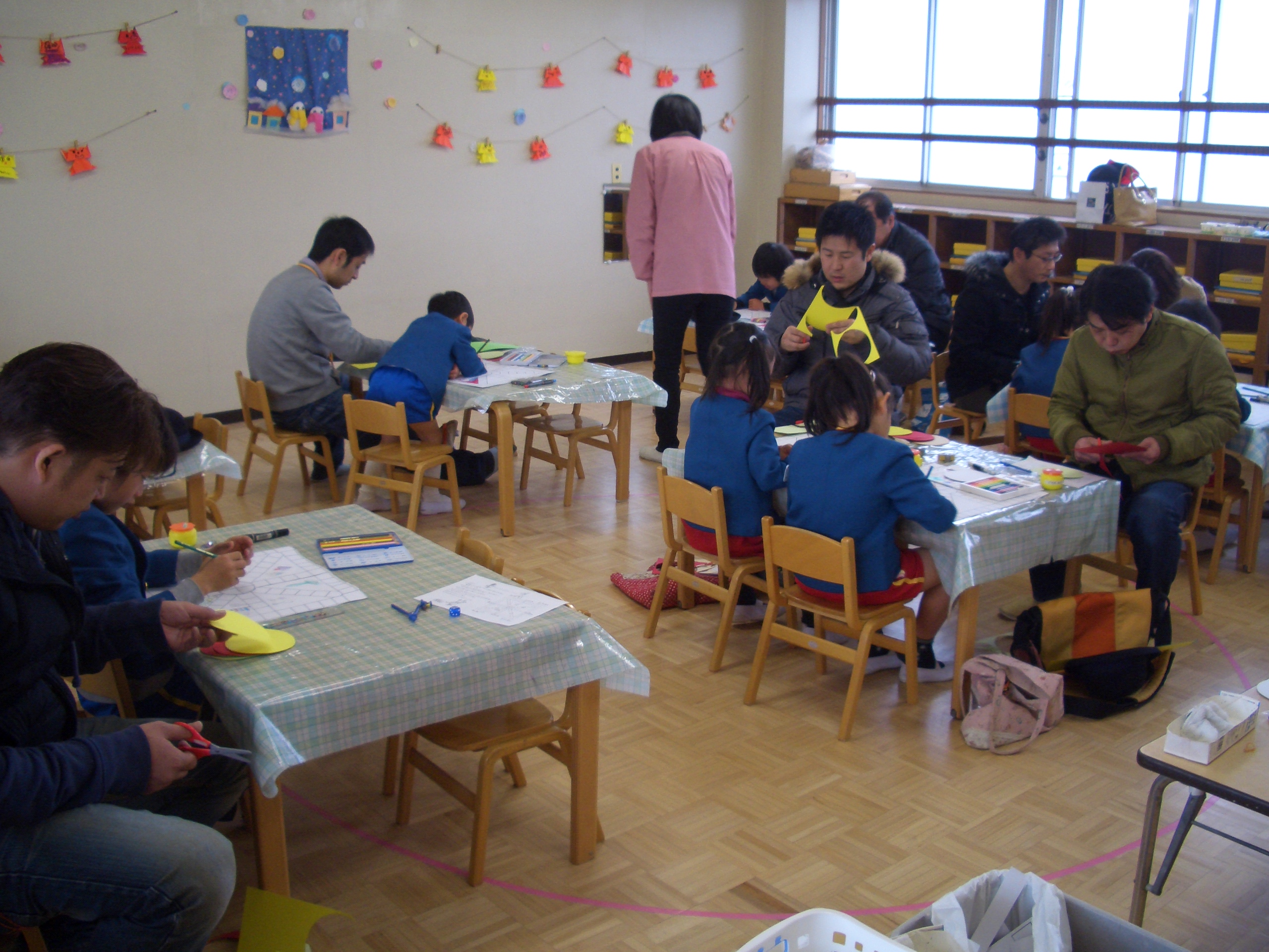 今日は、まふみっこフェスティバルでした。紙粘土のペン立てや、空きカップを使った動く車などをお家の方と一緒に力を合わせて作り、楽しい時間を過ごして頂きました。また、一年間の絵画活動による絵画の展示もあり、それぞれのコメントを読みながら会話を楽しんでいらした場面もありました。