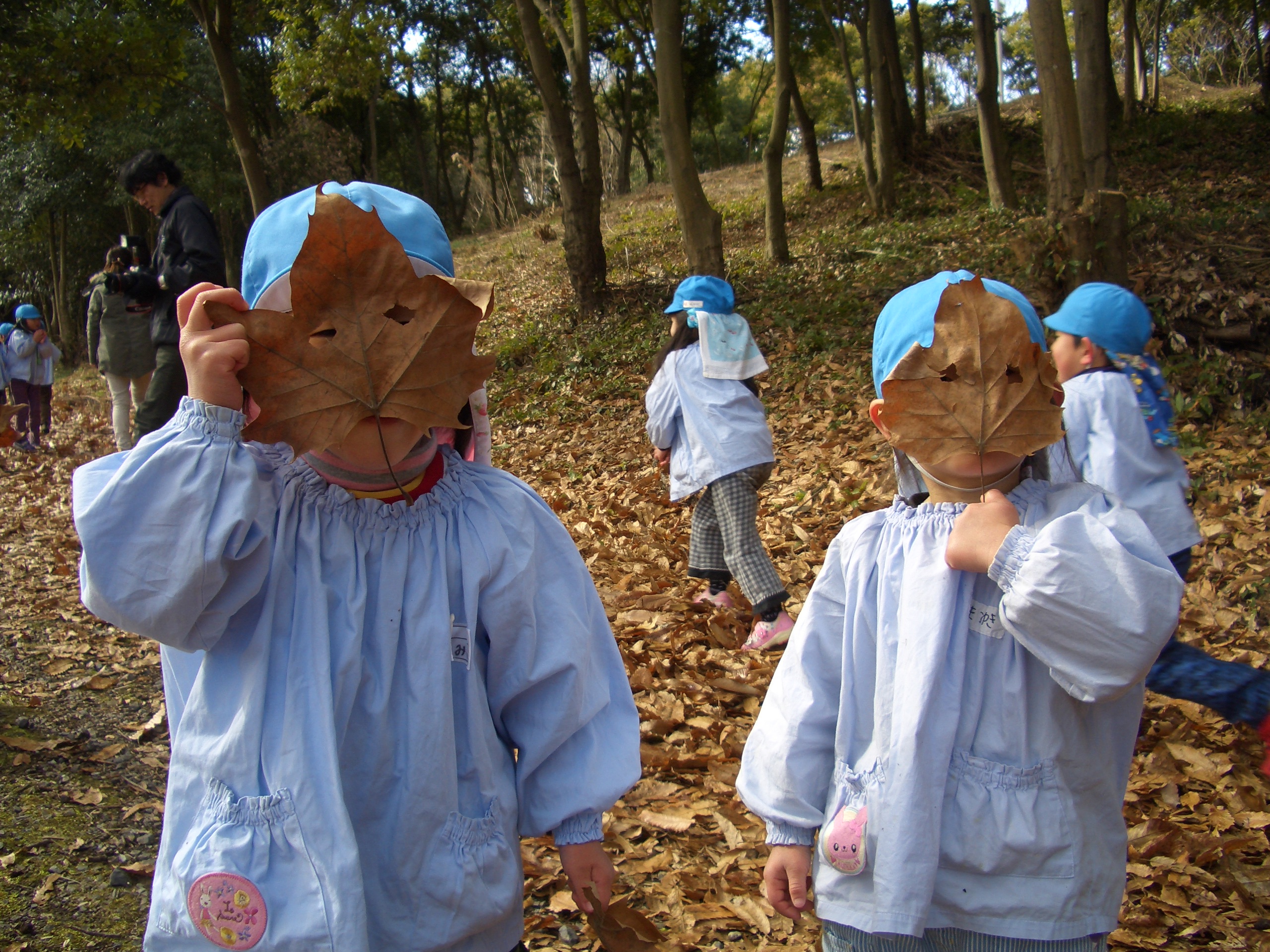 斜面をかけ登ったりたくさんの落ち葉で遊んだりと寒さに負けず、元気いっぱいでした。