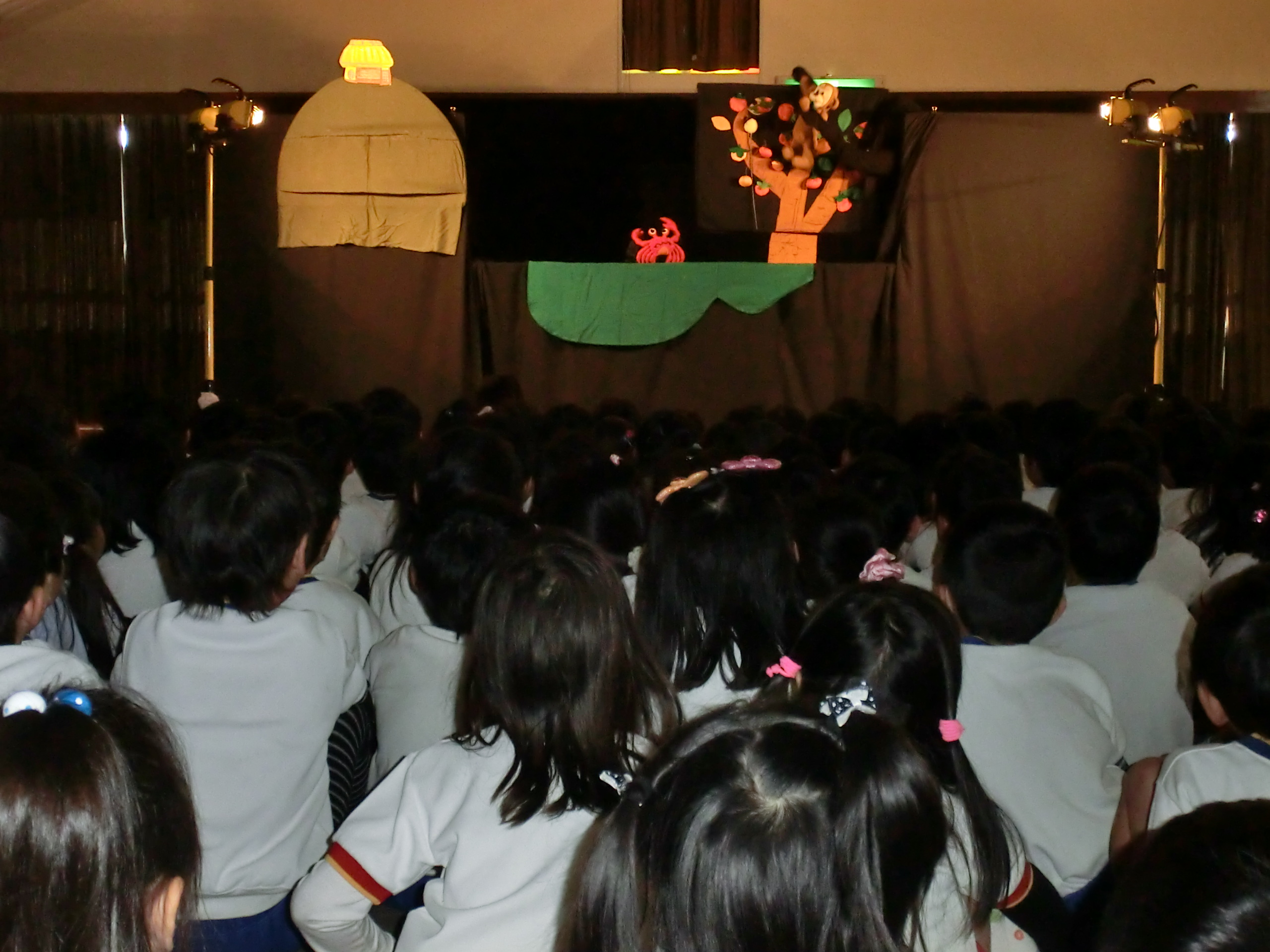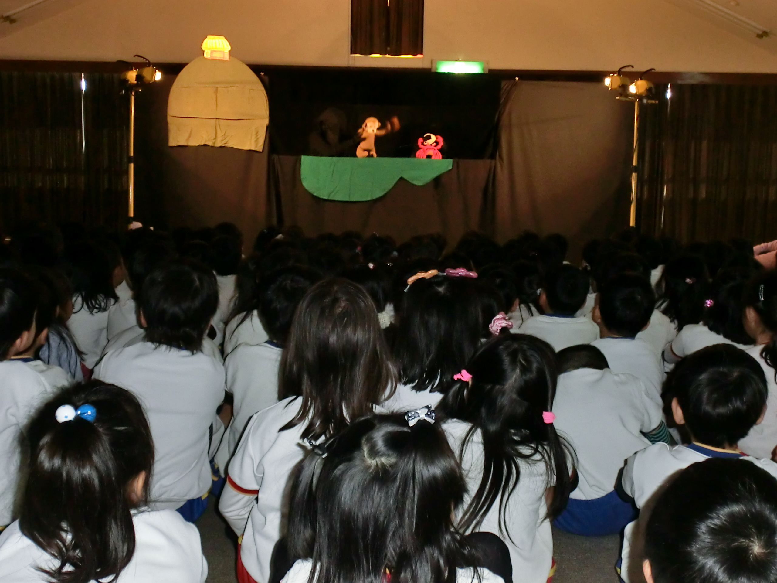 10日(木)、劇団ポックルさんの人形劇を観ました。かわいい人形を観て大興奮の子どもたち。劇が始まると夢中になって観ていました。