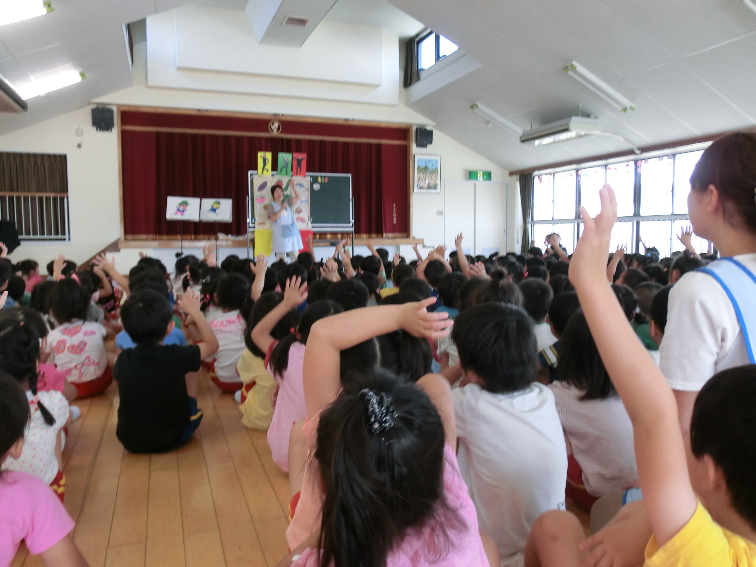 今日は、ぱくぱく教室が行なわれました。食育についてのお話で、黄・緑・赤のグループの意味を知りました。その後の給食では、「にんじんは緑のグループだよ!」「こんにゃくは、何色のグループかな?」などたくさんの声が挙がり食事を楽しんでいました。