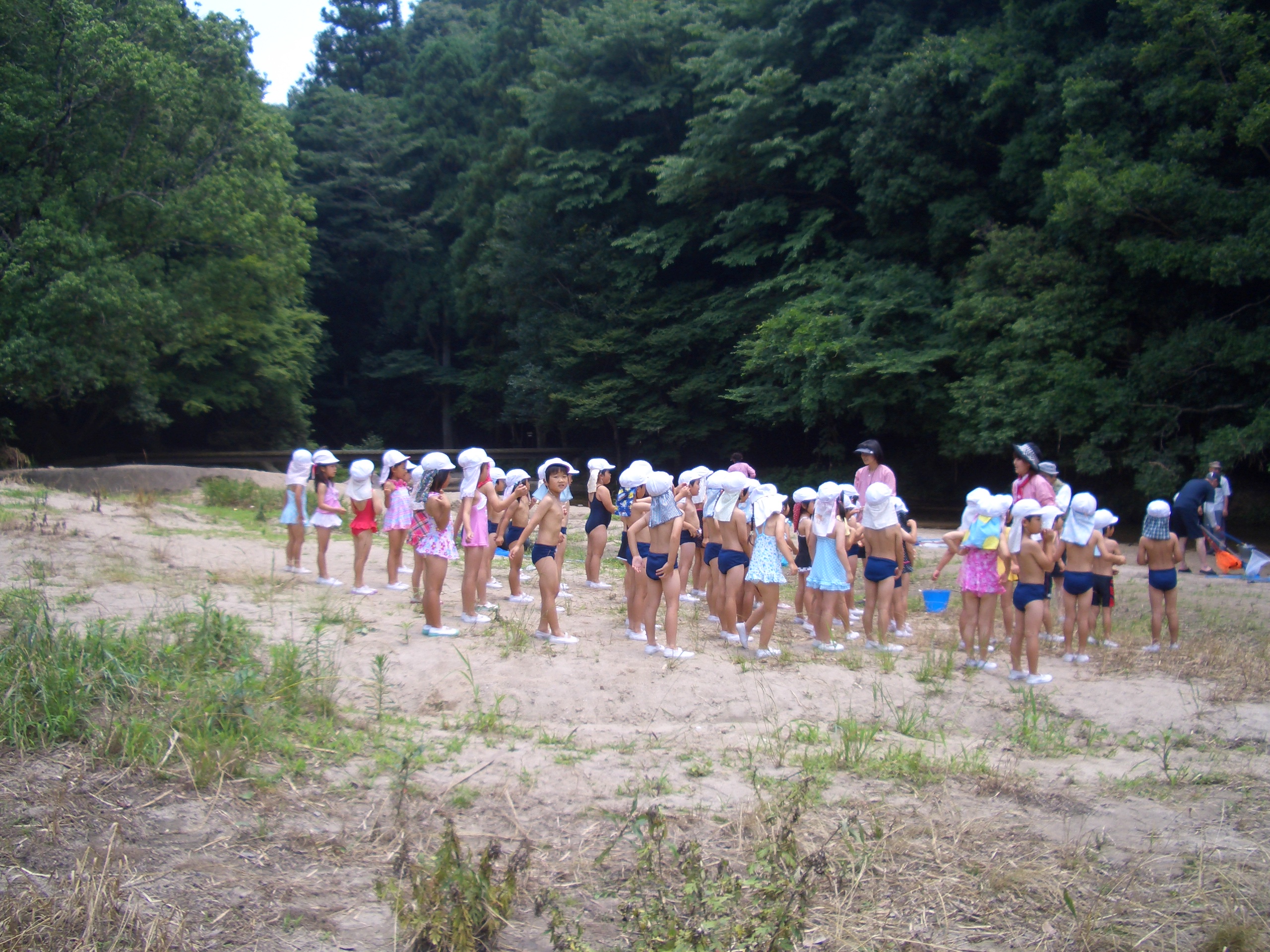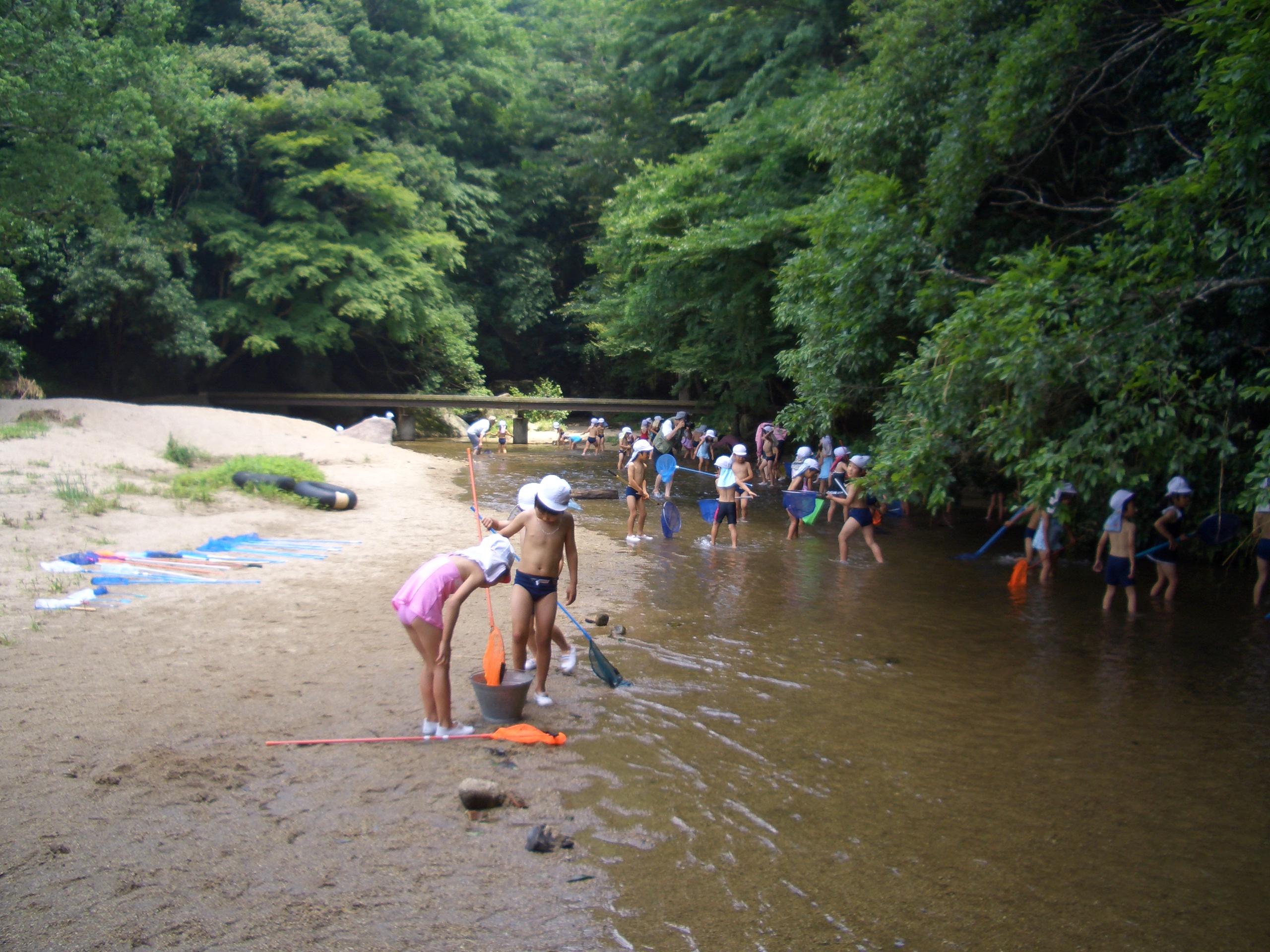 ちきゅう組、たいよう組、大滝渓谷へ川あそびに行ってきました。カニや魚をつかまえたり、水鉄砲や浮き輪で遊んだり、とても楽しくすごせました。