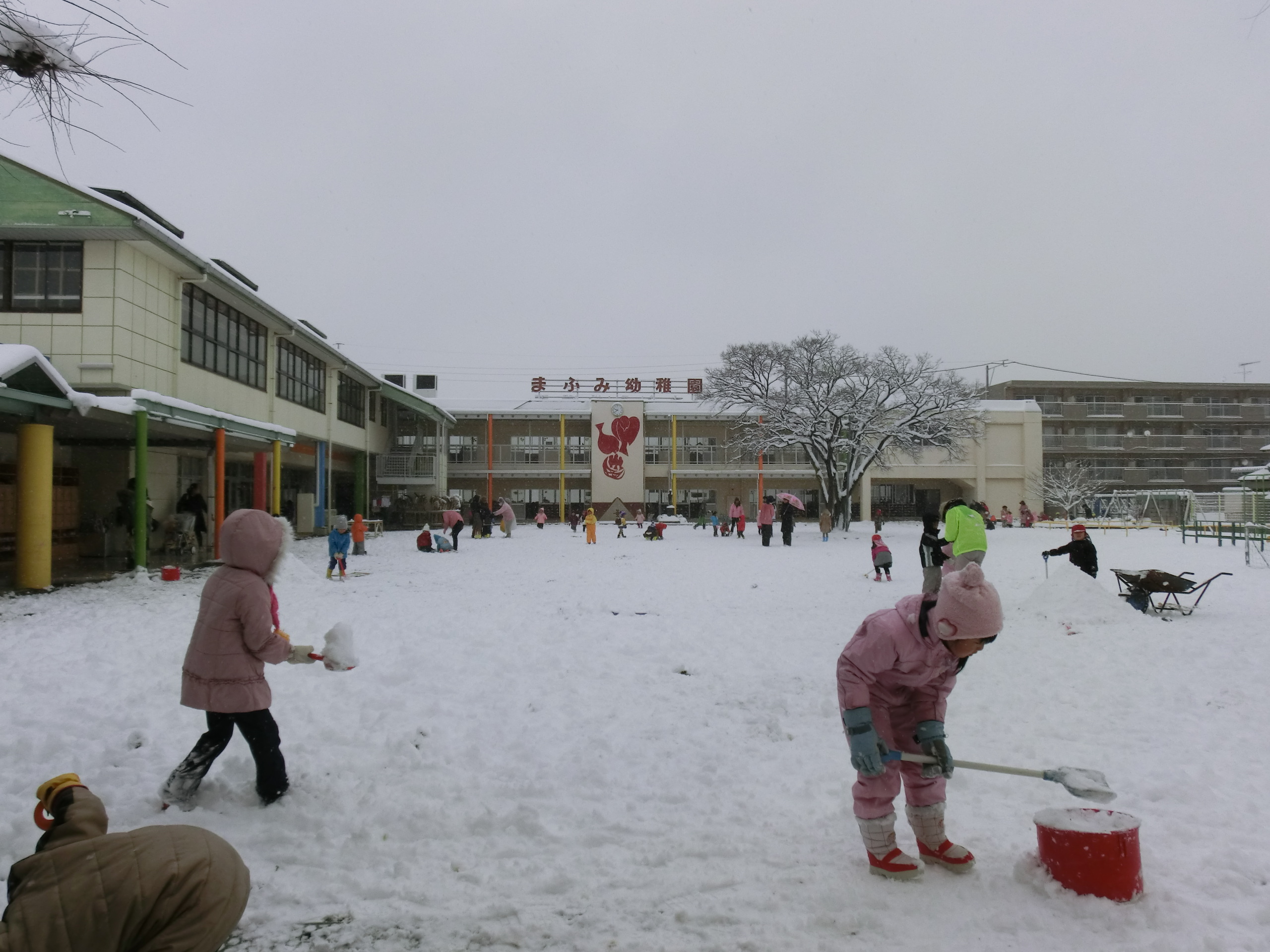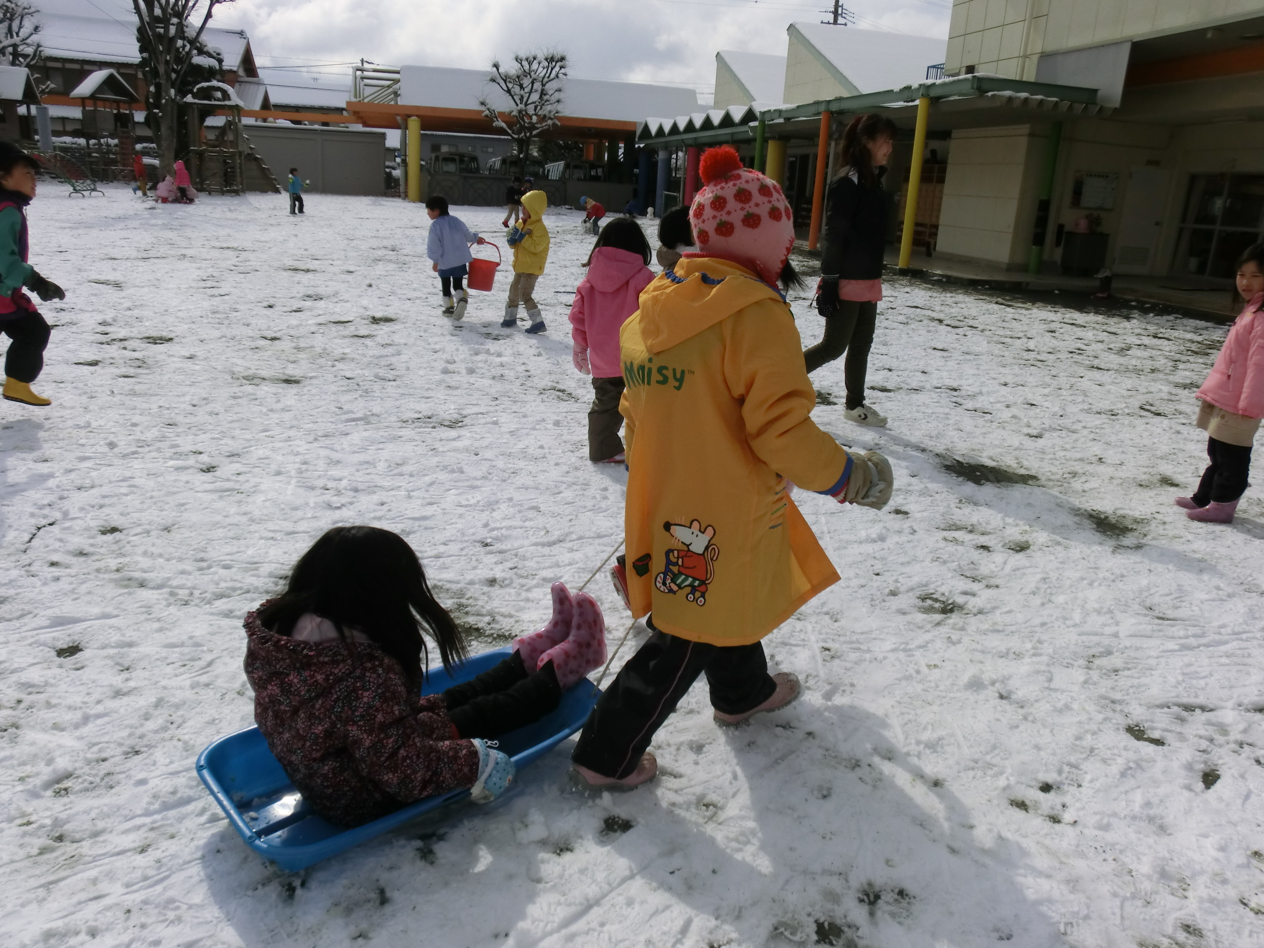 昨日は、たくさんの雪が降りました。幼稚園の雪景色に子どもたちも大喜びで、寒さにも負けず、雪合戦やゆきだるま作り、そり遊びなどを楽しみました。