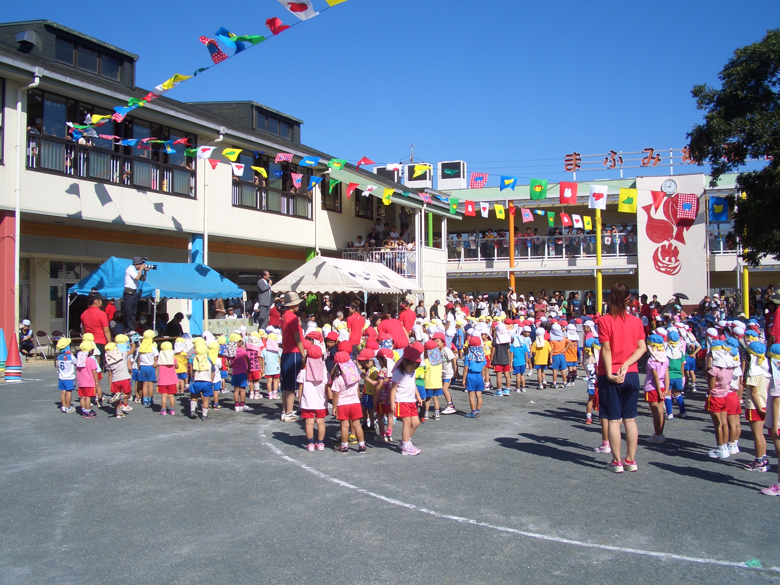 良いお天気の中、子どもたちの楽しみにしていた運動会を行いました。楽しい遊戯、頑張ったかけっこ、お家の方との競技などをして過しました。
