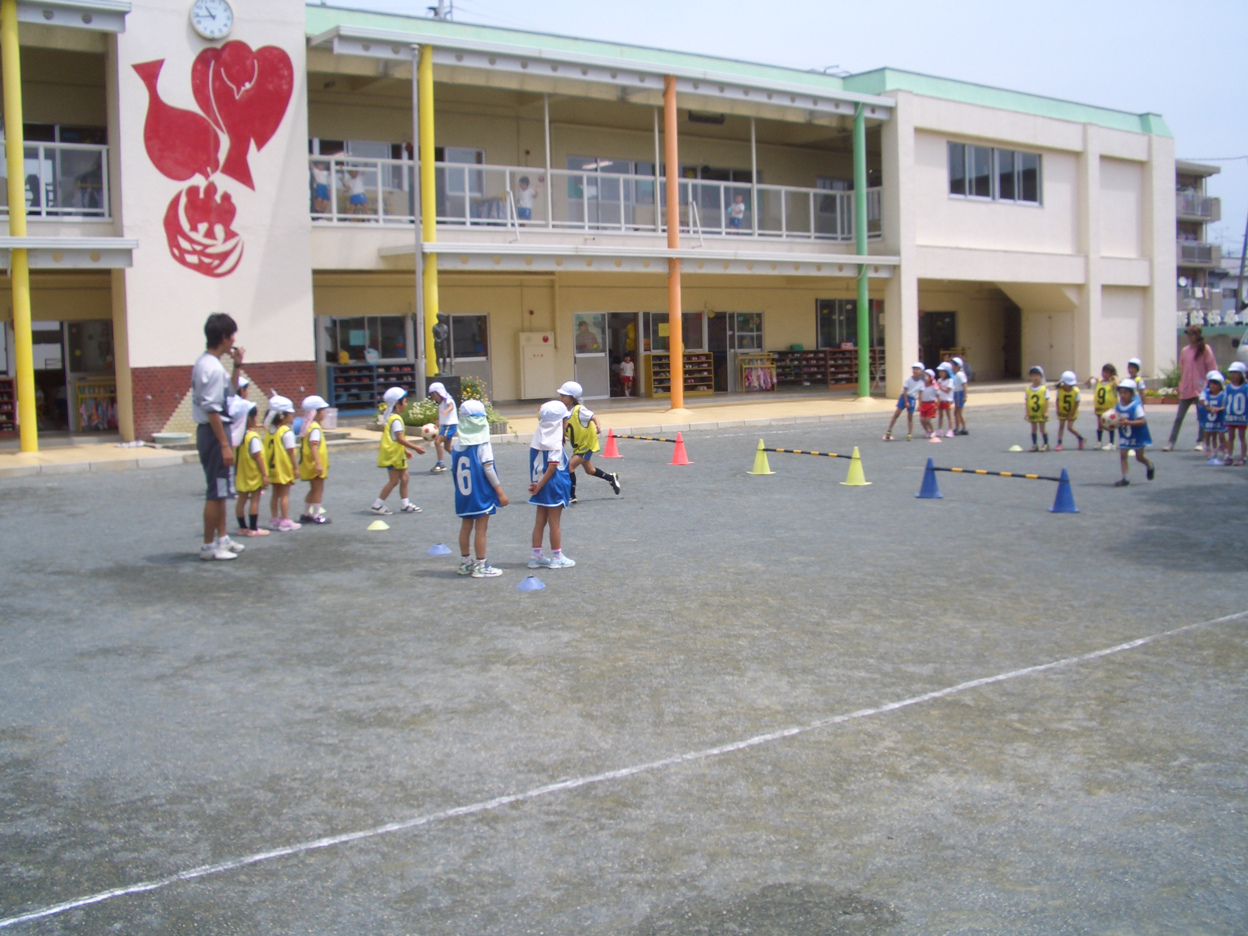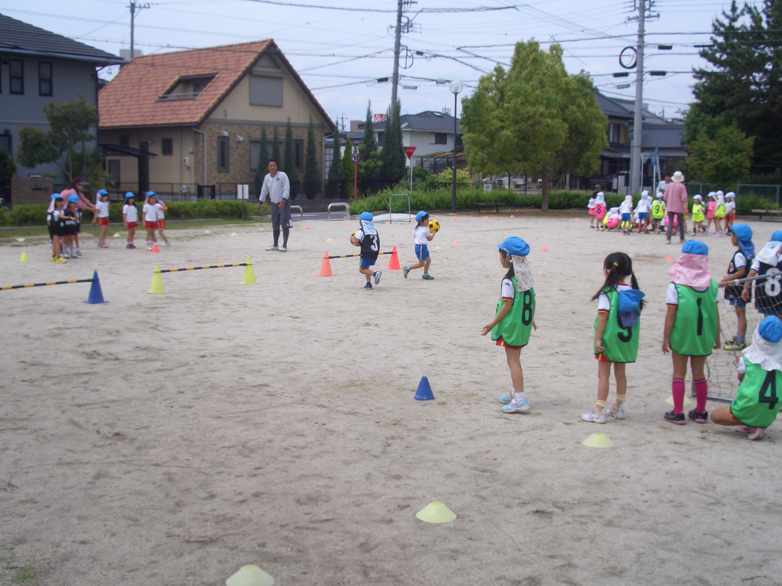 グランパスの方にサッカーを教えて頂きました。みんな元気いっぱい体を動かしたくさん汗をかきとても楽しんでいました。