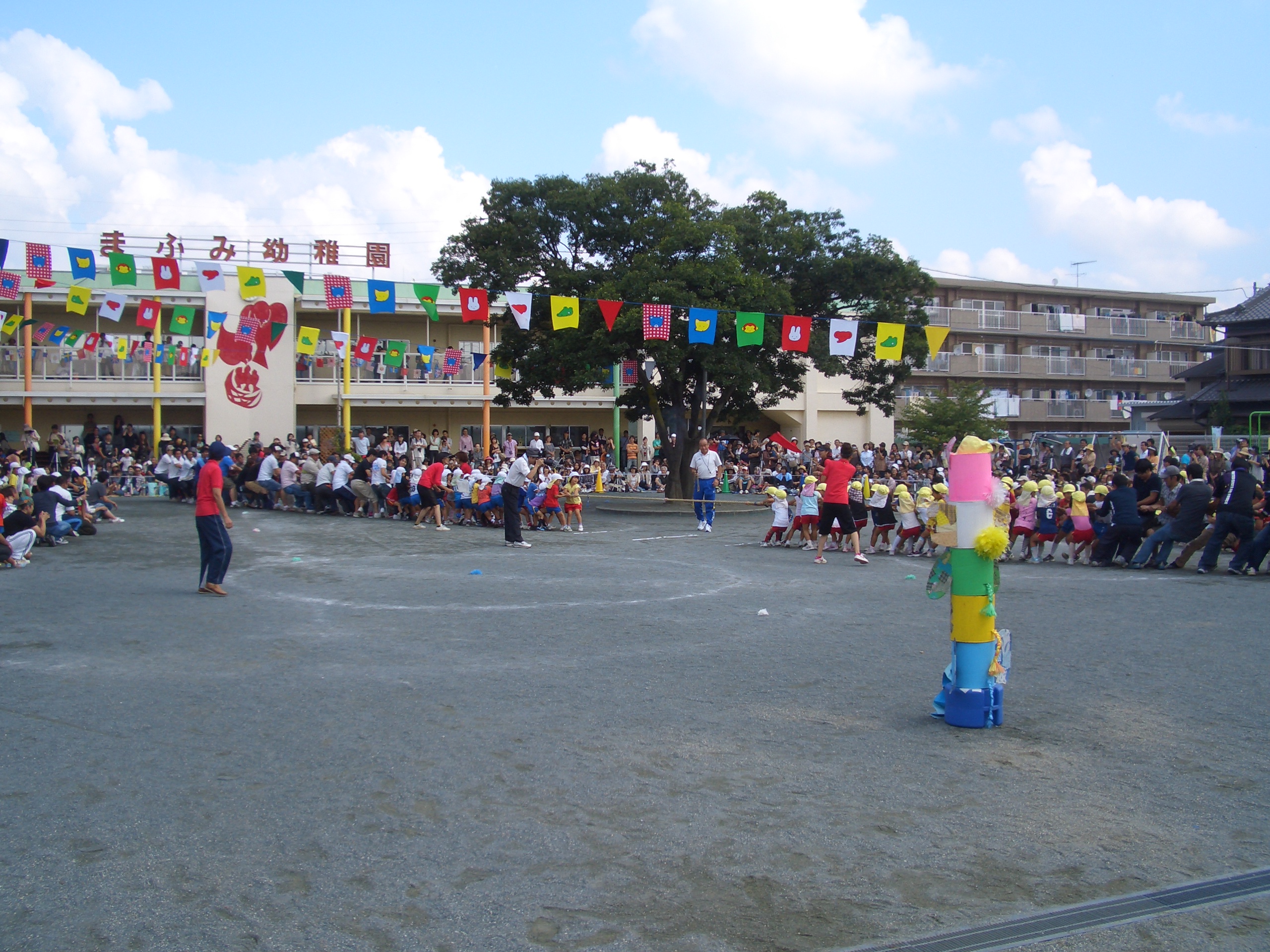 秋晴れの中、第35回まふみっこ運動会をおこないました。かわいい年少さんの遊戯、年中さんのかけっこ、年長さんの綱引き、遊戯、クラス対抗リレーなど、たくさんの応援を頂きみんな元気に頑張りました。