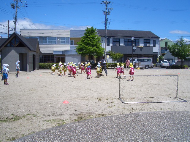 本日、年長児名古屋グランパスの方にサッカーを教えていただきました。始は戸惑いながらも一生懸命ボールを追いかける姿がありました。