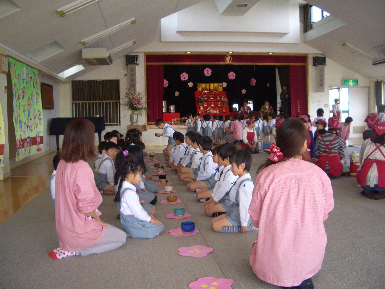 父母の会のお母さんたちに抹茶をたてて頂きました。いつもとは少し違った雰囲気で、ちょっぴりドキドキした子どもたちの表情が見られました。