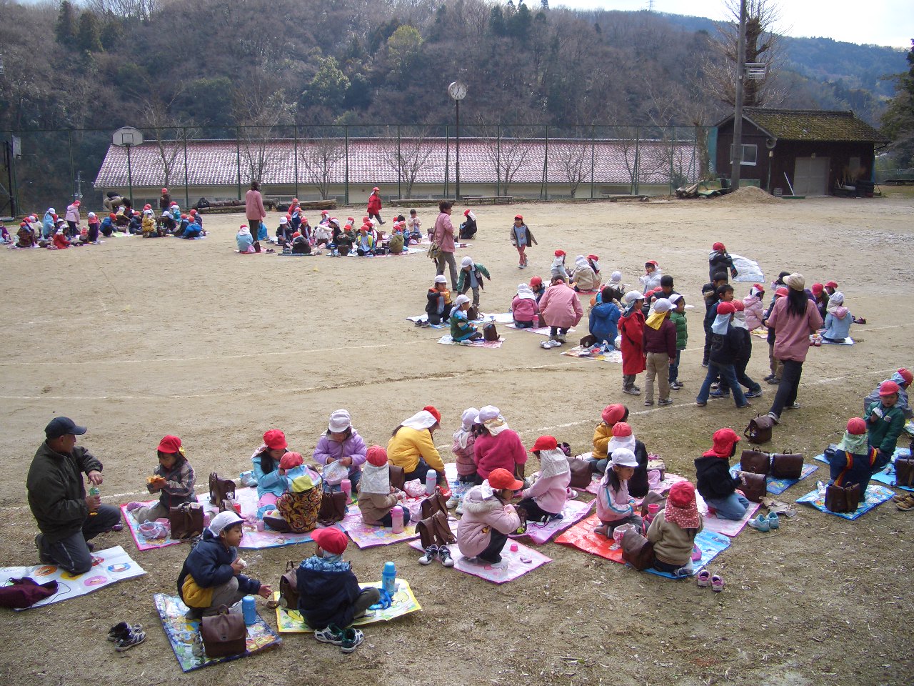 年長児 則定小学校裏山登り