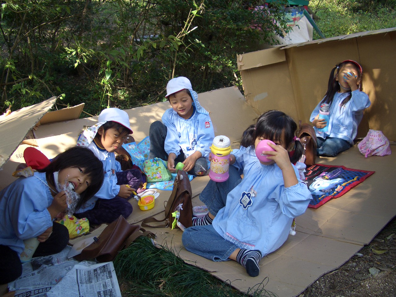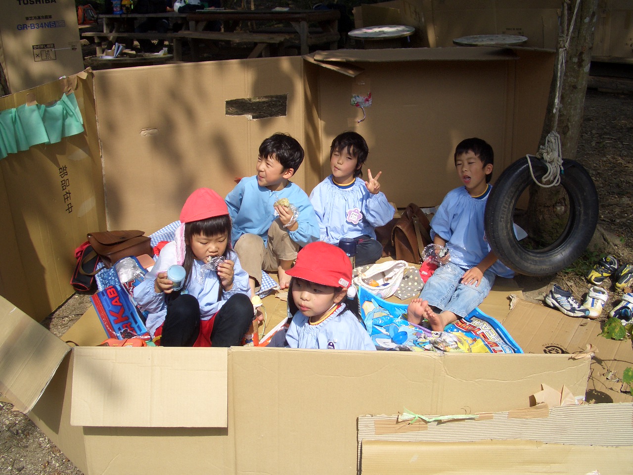 自分たちで作ったお家の中で、おいしくおにぎりをたべました。