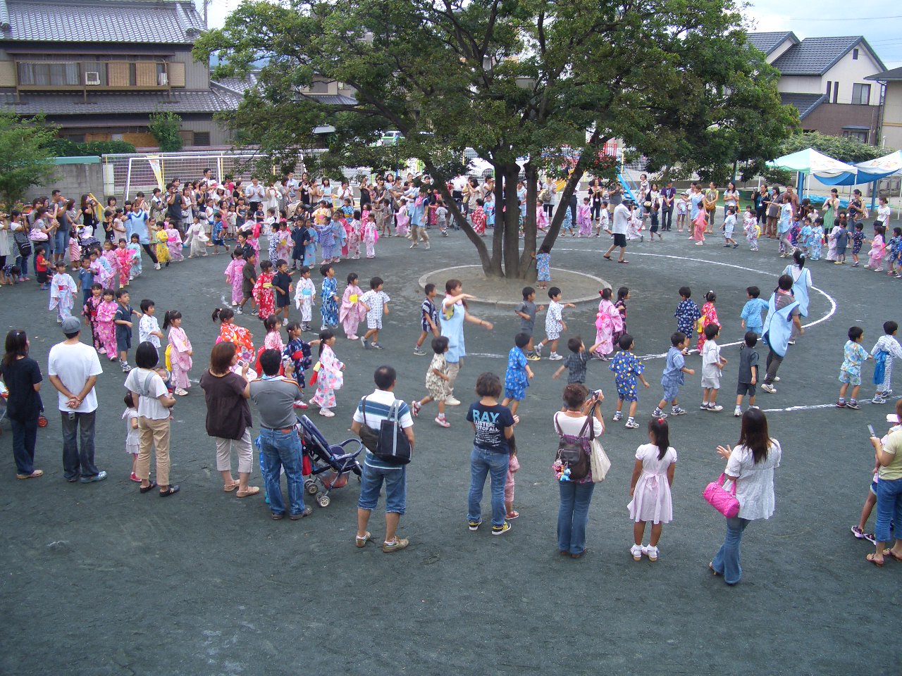 子どもたちとカレーのやさいを切ったり、バスで竹島水族館にでかけました。最後は保護者の方も一緒に おいでんを踊りました。とても楽しい一日でした。