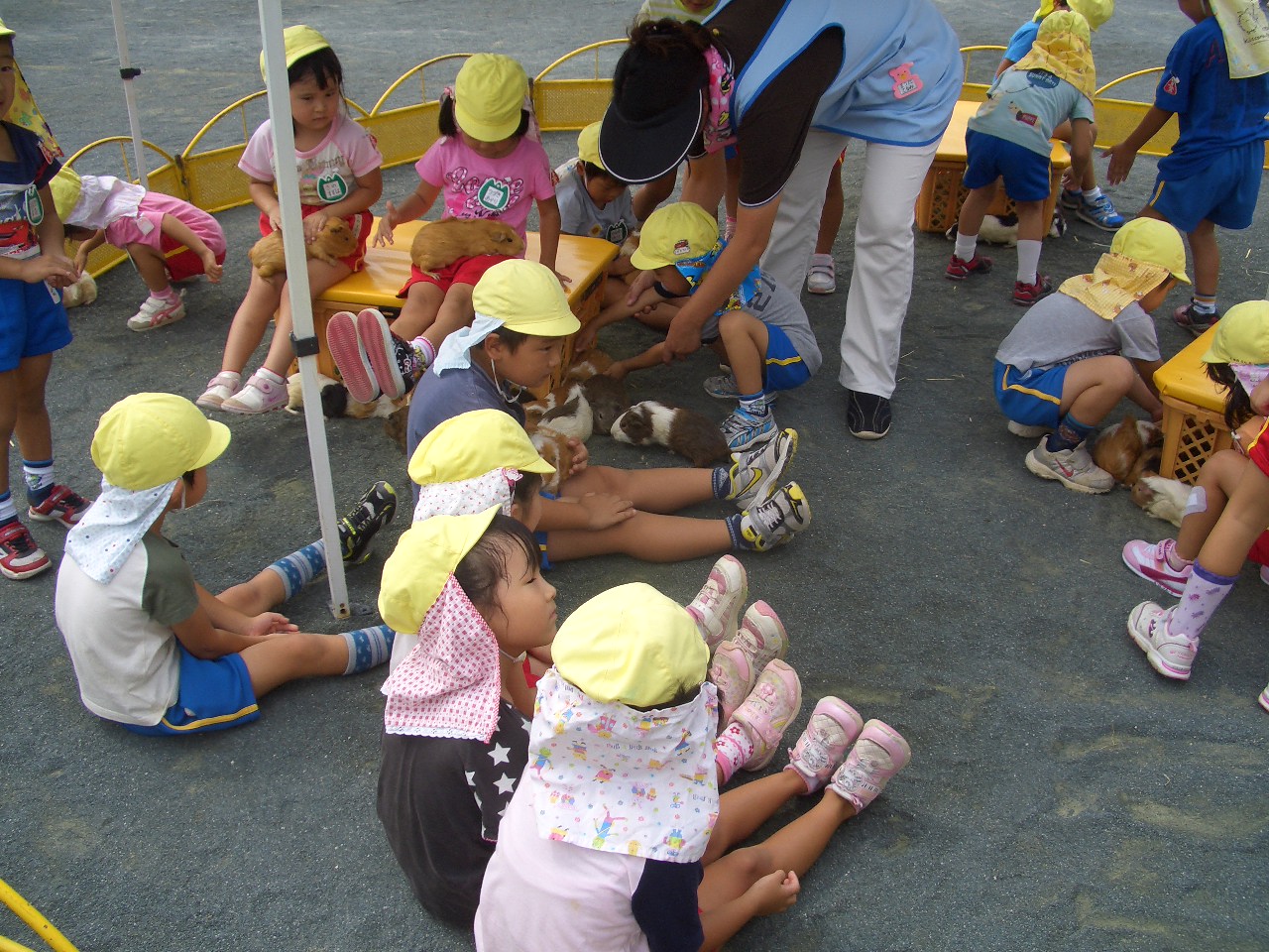 間近で見て触れる動物に「かわいいね」と優しく抱っこをする子ども達。楽しい一日となりました。