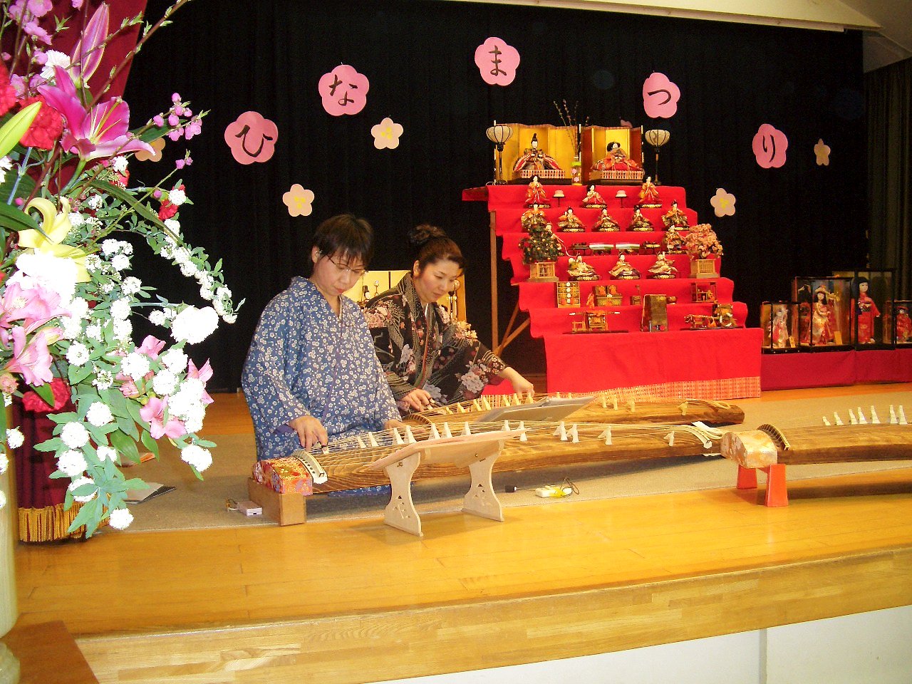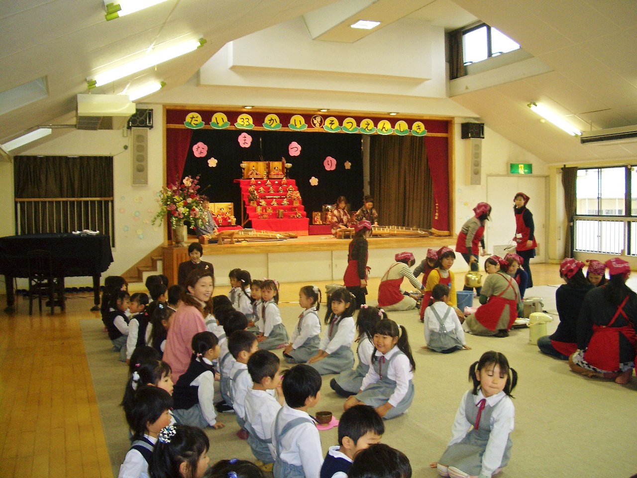 3/3 ひな祭り 年長さんのお茶の接待。理事長先生や父母の会OBの皆さんの琴演奏。