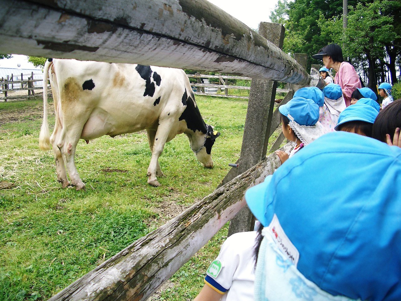 園バス3台に乗り 名古屋市農業センターへ園外保育に出掛けました。大きな牛や、可愛いひよこの誕生を見て感動のの1日でした。