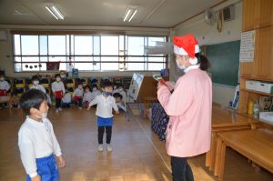 今年のクリスマス会は、年長さんは遊戯室、年中・年少さんはそれぞれのお部屋で行いました。