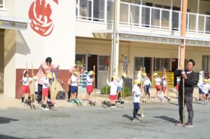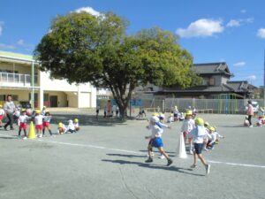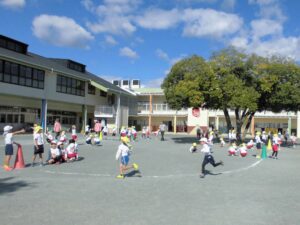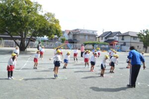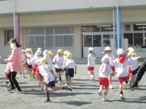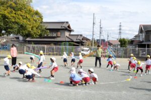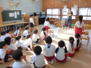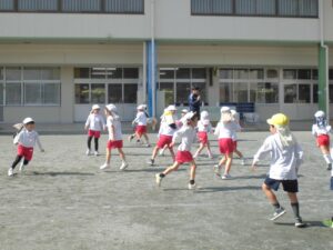 また、豊田市からの派遣で来てくださったゆっきい先生のうんどうあそびでは、おにごっこをしたりジャンプをしたり、楽しく体を動かしました。