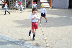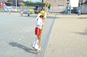 たくさん練習をして、さっそくゴールまで到達し竹馬名人になったお友だちもいます。すごいですね!