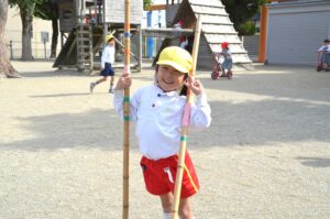 今週の給食後の園庭では、6月のまふみっこの日にお家の方に組み立てていただきお家で自分専用にカスタマイズされた竹馬に乗って、一歩一歩練習しているお友だちが増えました。