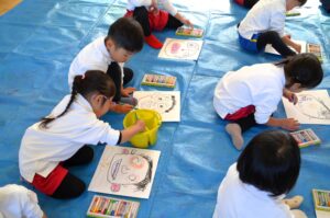 「ぼくの絵、あった!」「年長のお兄さんたちの顔、すごかった!」「明日、お母さんに説明しなきゃ!」と明日、お家の方と一緒に見るのがみんな楽しみのようです。