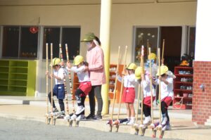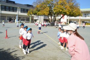 おひさまが出て風のない日は絶好の外あそび日和です。笑顔が園庭にいっぱい広がっています。