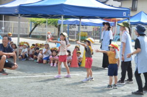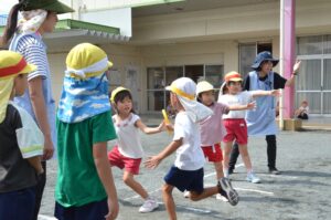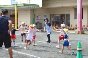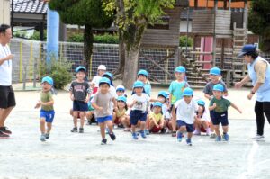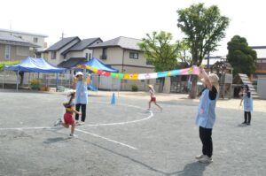 「今日はなんとか外に出られそう!」という日が増えてきて、幼稚園もやっとかけっこあそびやリレーあそびなど、運動会につながる園庭あそびが始まりました。