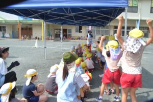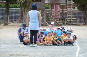 9月も半ばにさしかかりましたが今年はまだ猛暑日が多く、先生たちは今日の曇り具合や気温などを天気予報で確認しながら、園庭で遊べるかどうか思慮しています。