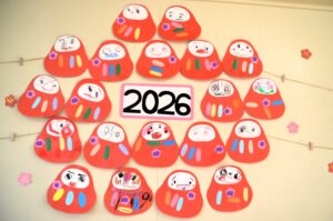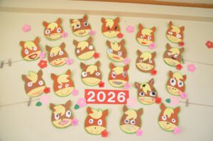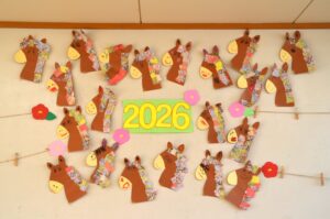 保育室にも新年の飾りが並んでいて、「おじいちゃんの所に行ってきたよ!」「おいしいおもち、食べたよ。」と楽しそうに話してくれるお友だちもたくさんいました。