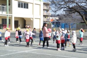 新年が明け一週間がたち、まふみようちえんも今日から三学期の始まりです。園庭に元気な声が戻ってきました。