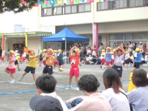 子どもも大人も大盛り上がりで、1回戦はほし組、2回戦はたいよう組が勝利、またそれぞれのクラスの担任からお家の方にベストオブダンシング賞が贈られました。