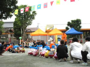 その後、少し雨が降って来ていったん競技が中断され、残念ながら未就園児さんの『なかよしかけっこ』は後日マミーズリンクで行うことになりました。