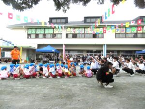 それでもお家の方や祖父母の皆さまがたくさん応援にお越しくださり、雨もやんで、さぁ開会式の始まりです。