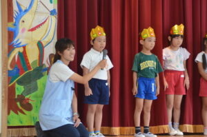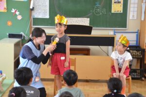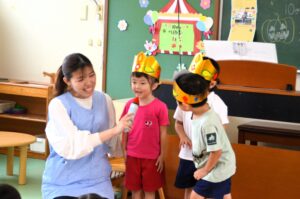年長さんは一人ずつマイクで自分の名前と「大きくなったら…」をお話します。たくさんのお友だちやお家の方を前にして、少し緊張気味のお友だちもいましたが、みんなしっかりお話することができました。