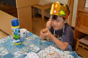 今月の父母の会さんからのお祝いのおやつはリンゴタルトでした。みんなでおいしくいただきました。