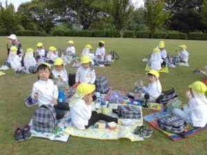 今日は年中さんが園外保育に出かけました。昨日からわくわくしていた年中さん。おにぎり弁当が入ったリュックを背負い、みんなでバスに乗って、市緑化センター(西山公園)にたくさんの秋を見つけに行きました。