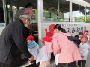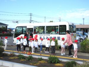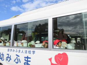 朝のごあいさつをして、みんなでバスに乗って出発!久しぶりにバスに乗るお友だちもいて、みんな嬉しそうです。