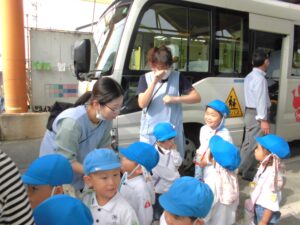 お天気が心配でしたが、朝から晴れ間が広がった週末の金曜日、年少さんが園外保育に出かけました。