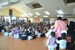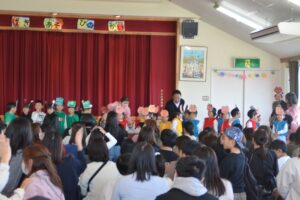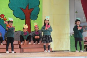 年少3クラス、年中4クラス、年長3クラスを3部に分け、今日はお家の方やおじいちゃんおばあちゃん、ご来賓の皆さまもお越しくださり、たくさんのお客様の前で披露しました。