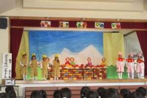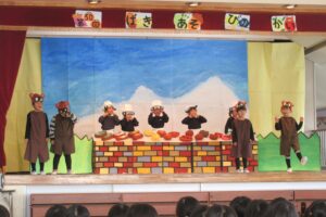 劇中の写真は当日の物ではないクラスもあります。少しですが子どもたちの頑張っている様子をご覧ください。