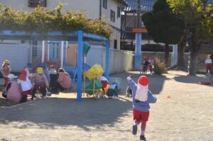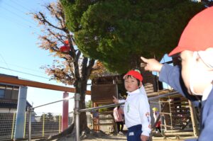 「先生、あそこにプレゼントがあるよ!」「手袋もあるよ。」「あれはサンタさんの帽子かな?」と、サンタさんの忘れ物探しで盛り上がる子どもたちでした