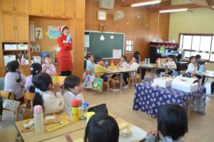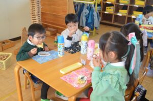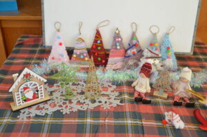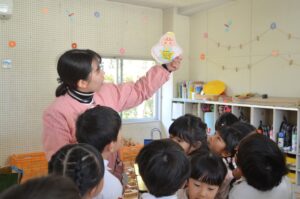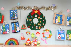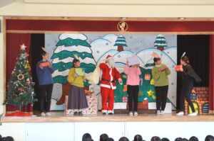 クリスマス会ではクリスマスツリーのオーナメントの意味を聞いたり、先生たちの劇を観て楽しみました。