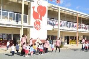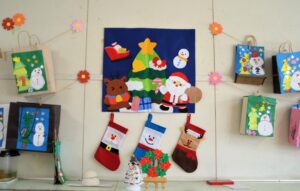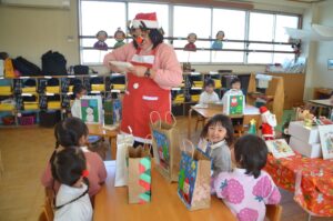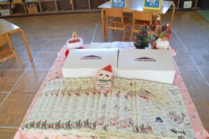 朝にはサンタさんの忘れ物のプレゼントや手袋が、幼稚園のあちこちにありました。