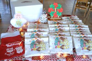 本当のクリスマスよりちょっぴり早くまふみ幼稚園に来てくれたあわてんぼうのサンタさん、たくさんのプレゼントやお菓子やケーキを持ってきてくれて大喜びのまふみっこたちでした。