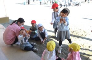 今週は個別懇談のため半日保育ですが、園庭は竹馬やドッジボール、なわとびやお団子づくりなど大にぎわいです。