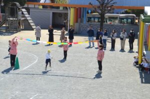 年長さんは、卒園を前に今練習中の『ビリーブ』を元気よく歌い、その後外に出てリレーをしました。