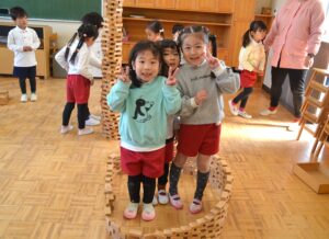 誕生日のお友だちがいなかったクラスでは、部屋いっぱいに積み木遊びを楽しんでいました。