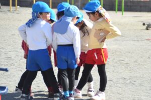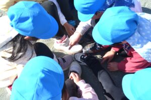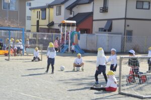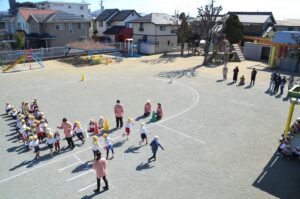 2月も半ばに入りまだまだ寒い日もありますが、風もなく暖かい日の園庭では、防寒用のトレーナーを脱いで元気に遊んでいるお友だちの姿があります。